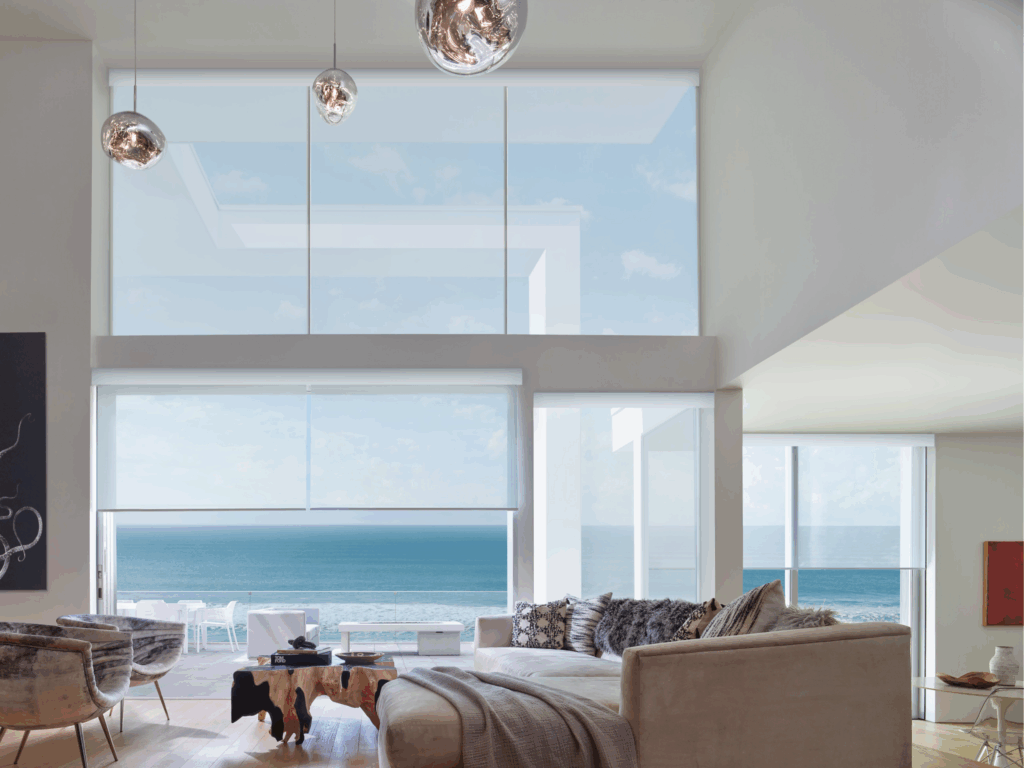 Try natural woven shades to bring in texture and soften your space while maintaining a relaxed, coastal vibe. They’re ideal for living rooms, dining rooms, or guest bedrooms.